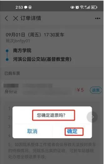 ①进入订单,点击“退票”。