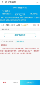 ⑤点击“增加/修改乘客”,并勾选“购票协议”,点击“立即支付”。