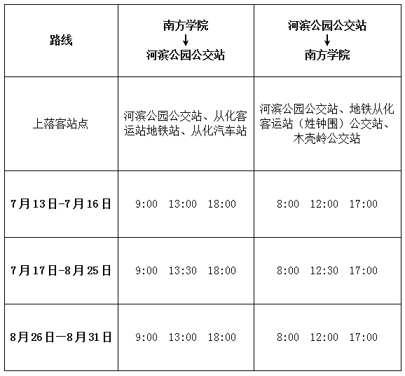 遵守政府与学校疫情防控规定,调整学校班车如下表,请按学校规定购票。购票系统中可查询班车车次。